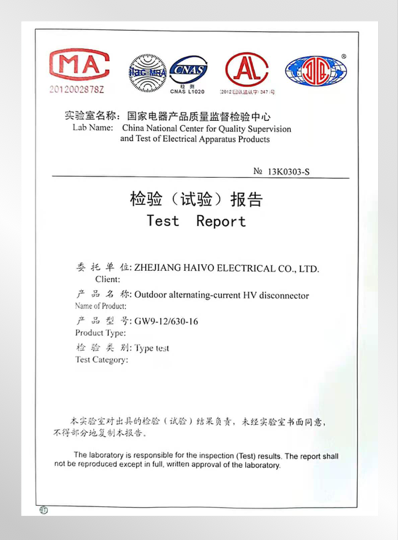 Für das Qualitätskontrollsystem wurde Haivo nacheinander nach sukzessive ISO 9001: 2015 von der DAS Certification Ltd & Ukas Qualitätsmanagement ausgezeichnet, und alle Serienprodukte wurden von international berühmten STL genehmigten Laborotaren (KEMA) und China National Labarotaren (Xihari) durchgeführt.
